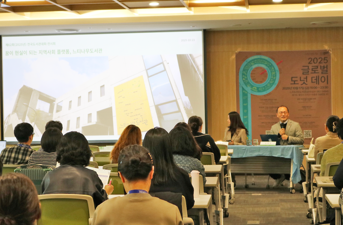 지역사회를 연결하고, 서로를 보살피고, 북돋는 도서관의 모습을 고민하는 사서들이 제62회 전국도서관대회에 모였습니다. 느티나무는 〈꿈이 현실이 되는 지역사회 플랫폼, 느티나무도서관〉세션을 열어 공공의 목표를 달성하기 위해 작동하는 ‘로컬 거버넌스’를 이야기했습니다. 느티나무 운영위원이자 아주대학교 사회과학연구소 이경민 님, 한국도서관협회 기획운영정책위원 최영준 교수(연세대 행정학과)가 패널로 함께했어요.